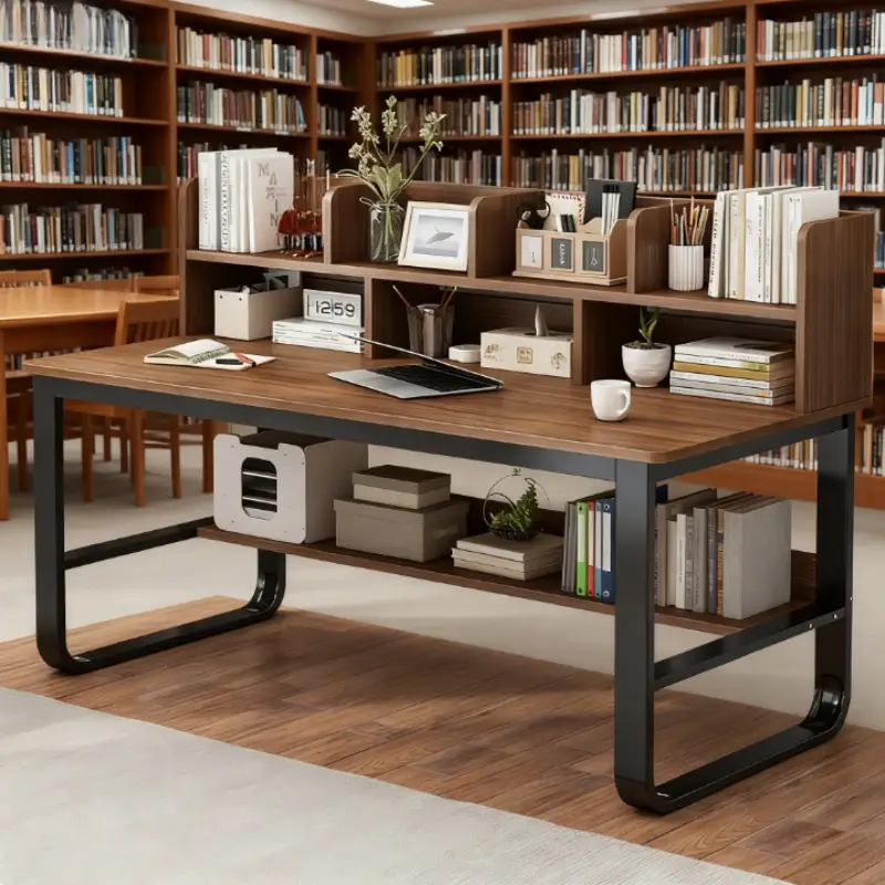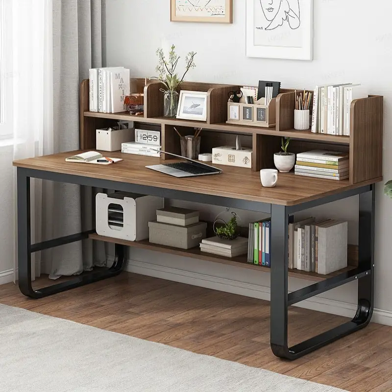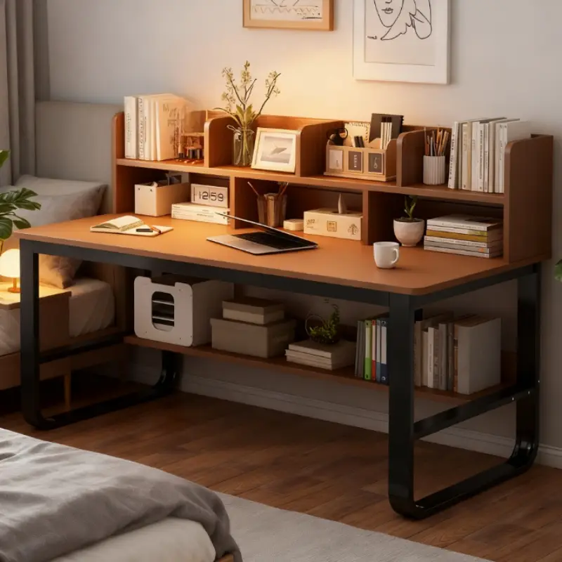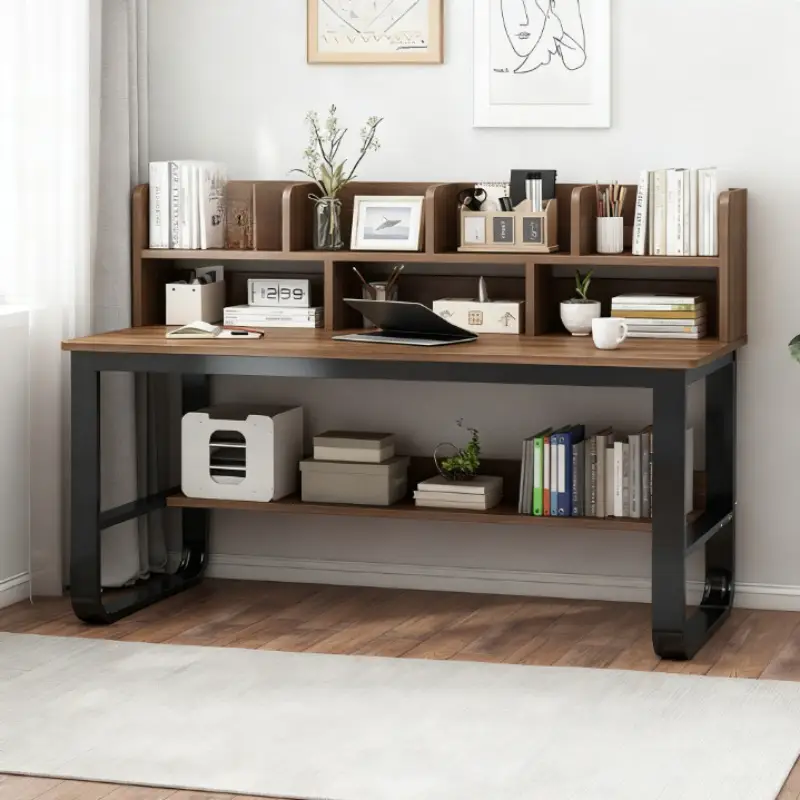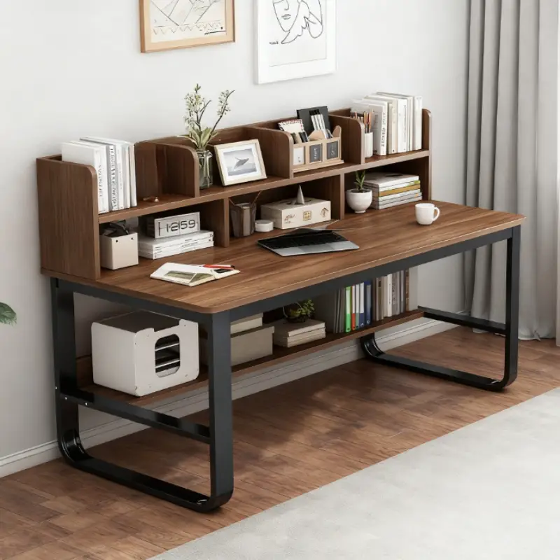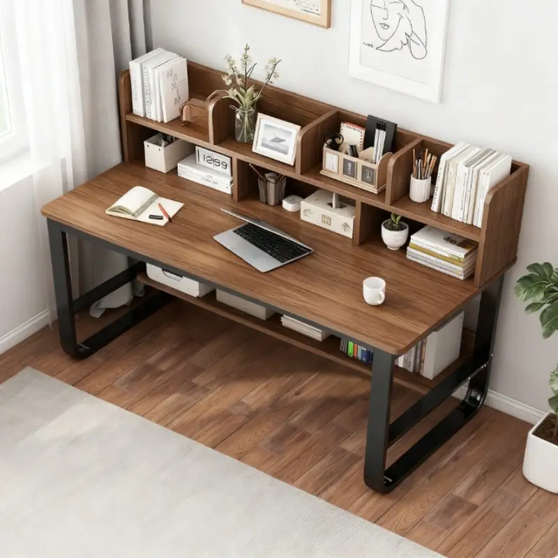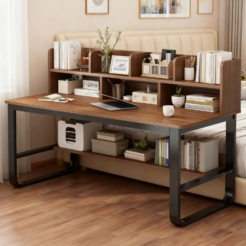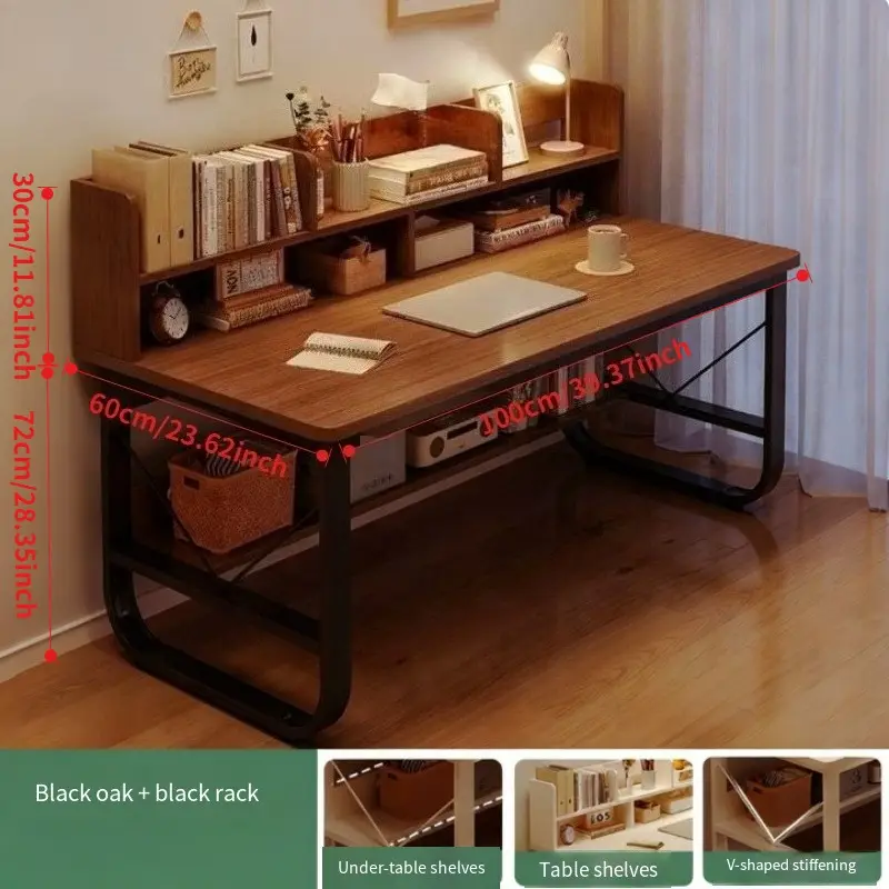 100CM Black Oak Wood Computer Desk | Integrated Bookshelf, Ideal for Home and Student Use, Simple Office Desk Design