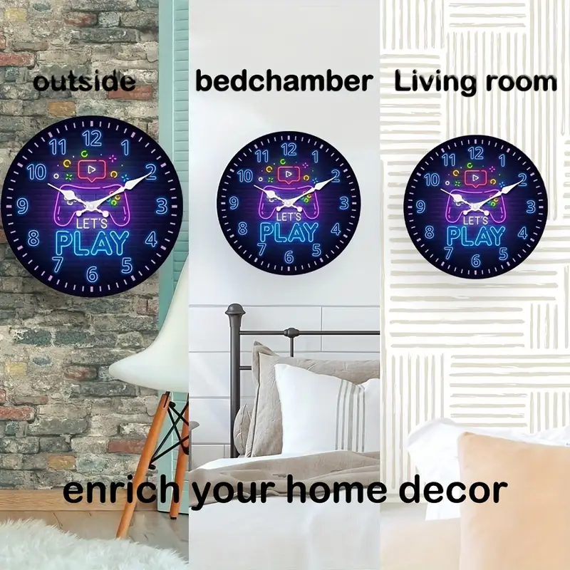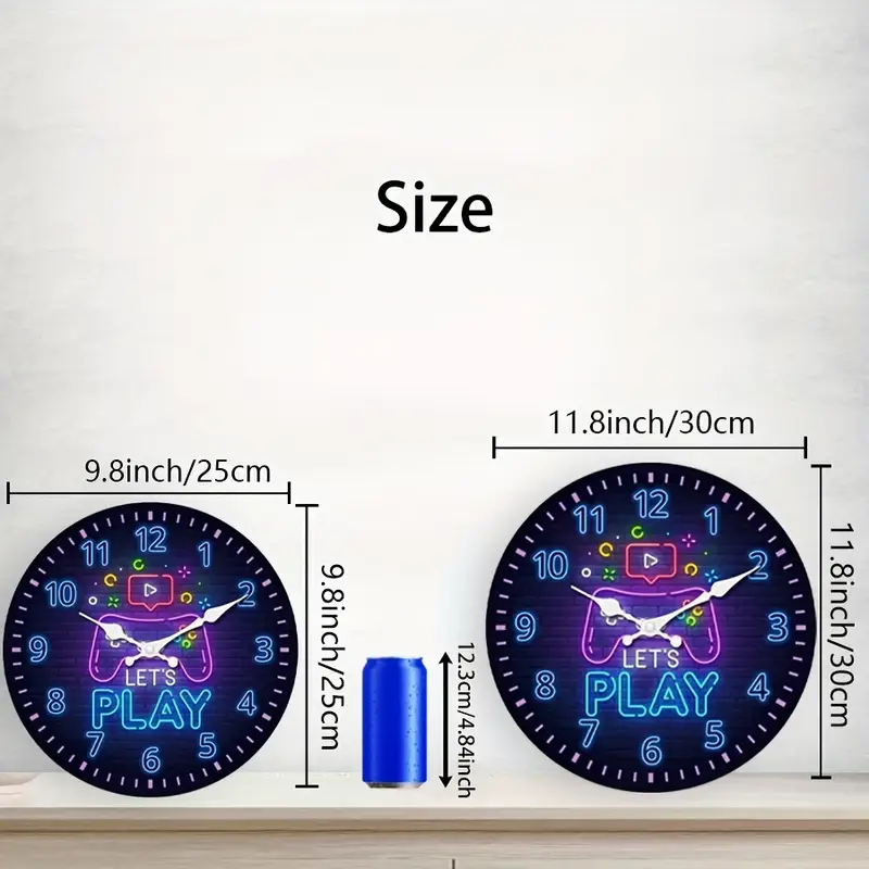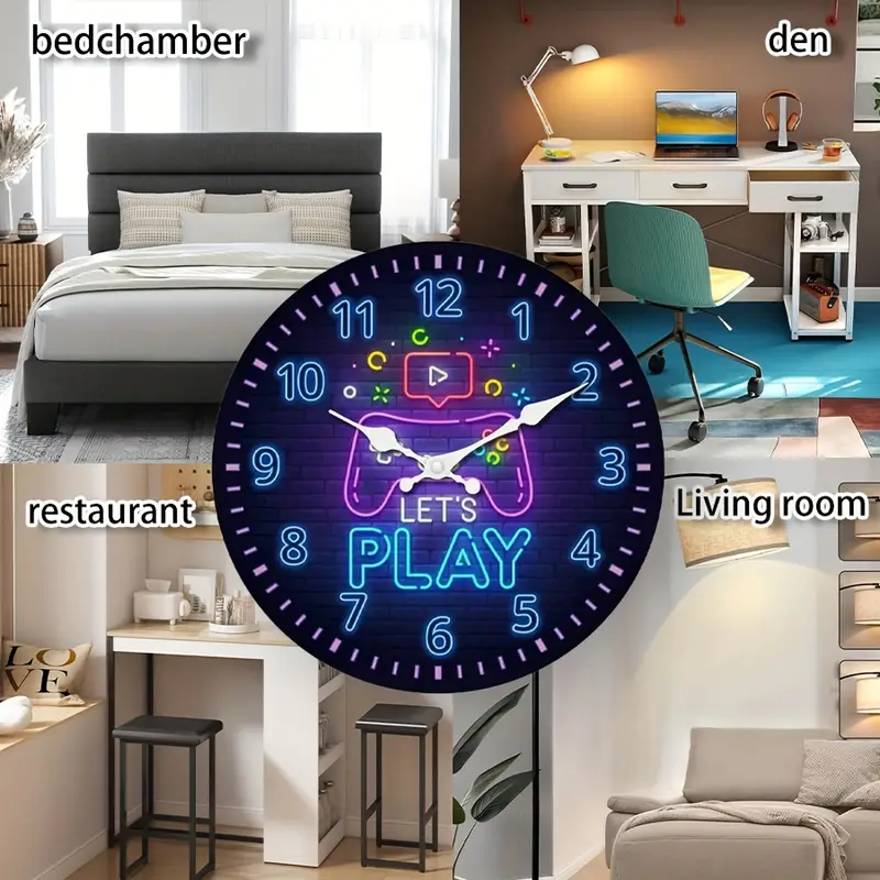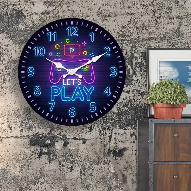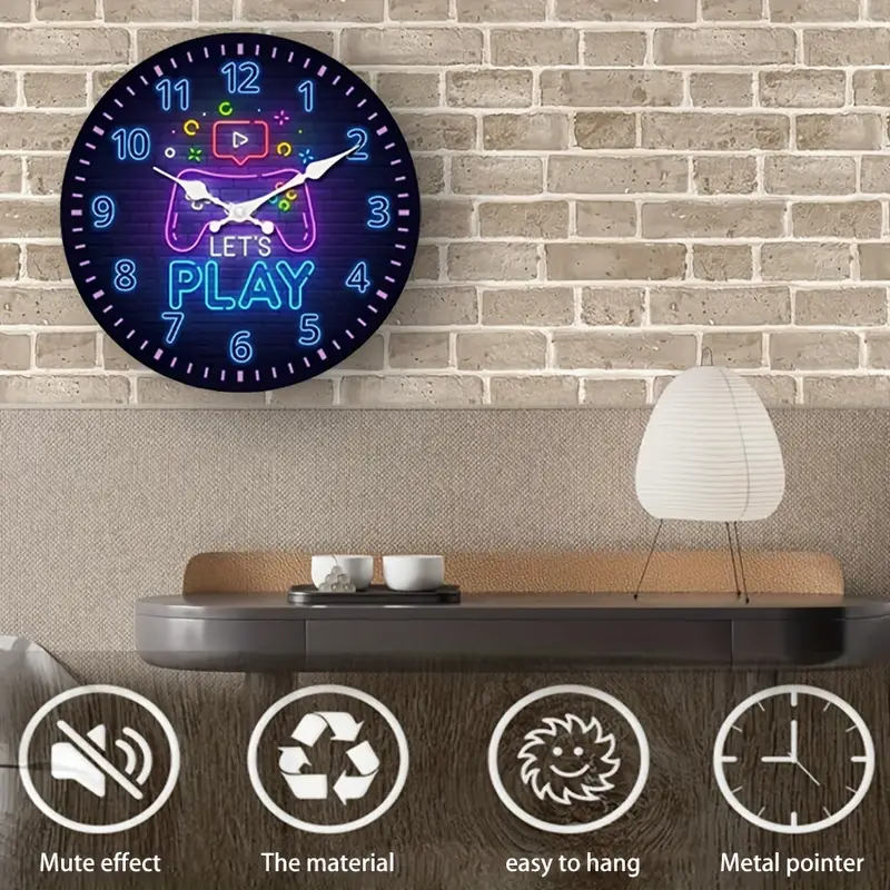 1pc Console Game Theme Clock, Round Silent Wall Clock, Suitable for Bedroom Living Room Bar Decor, Holiday Gift