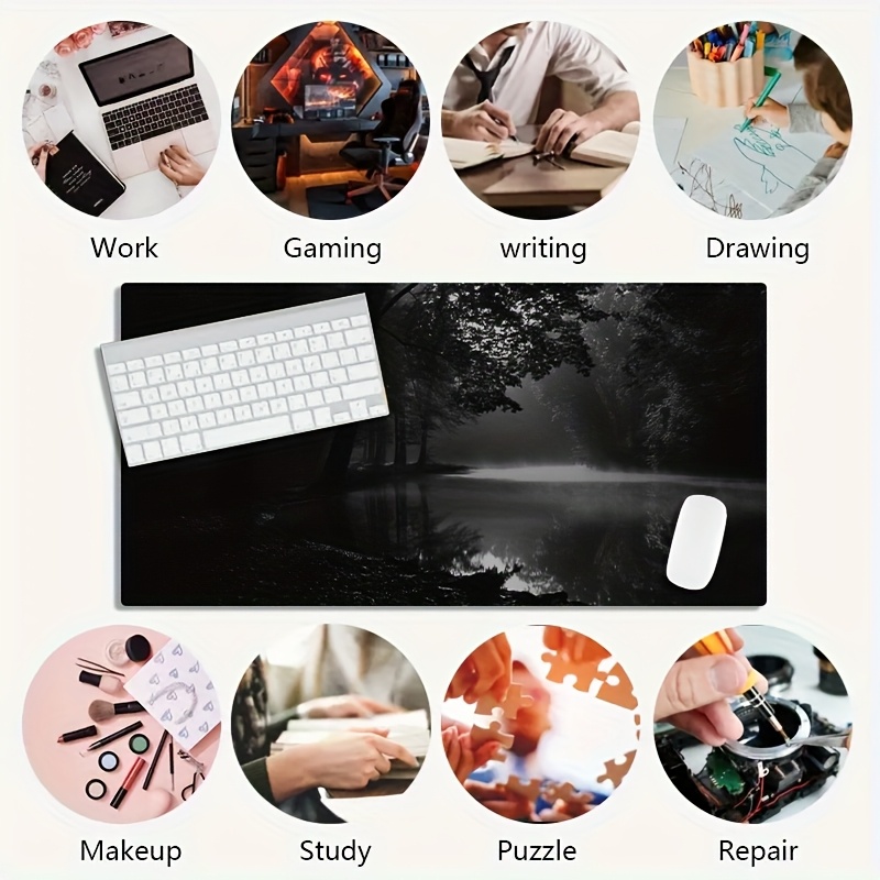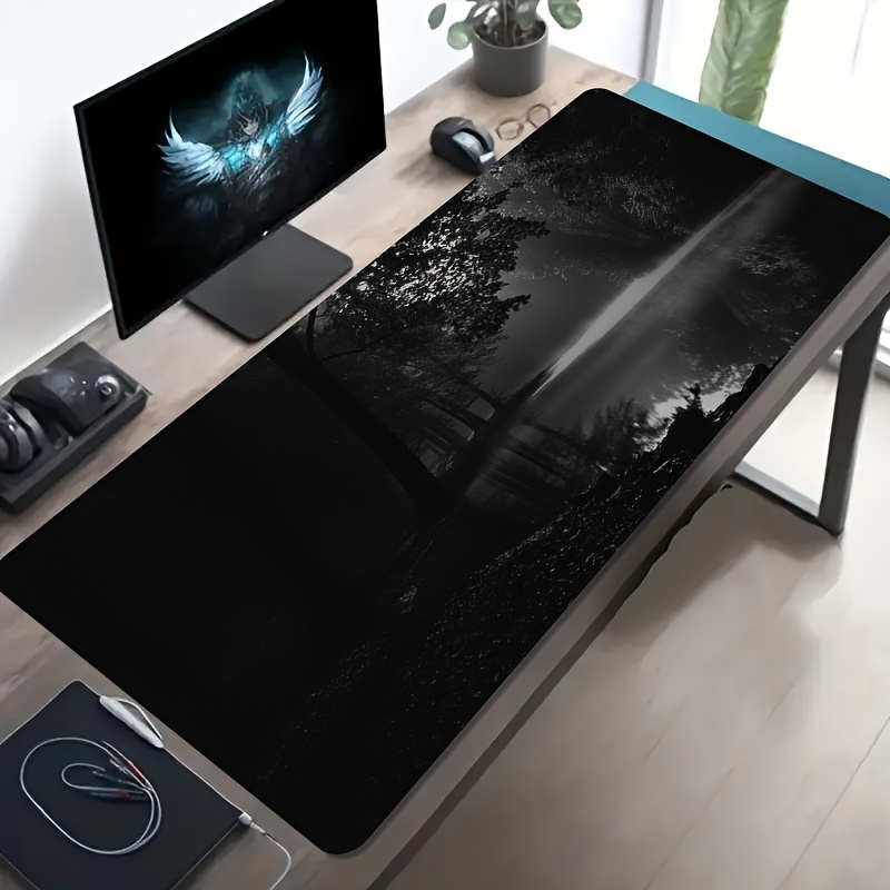 Gaming Mouse Pad - Non-Slip Rubber Base, Extra Long Desk Mat with Black & Forest Design