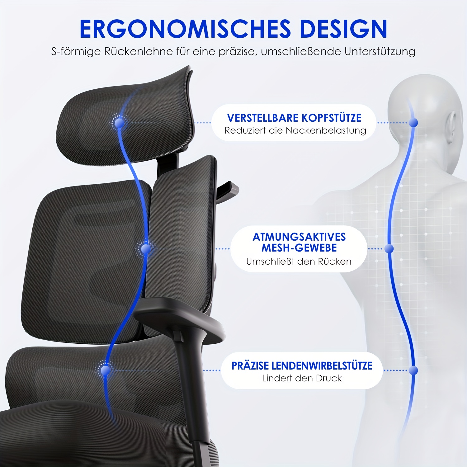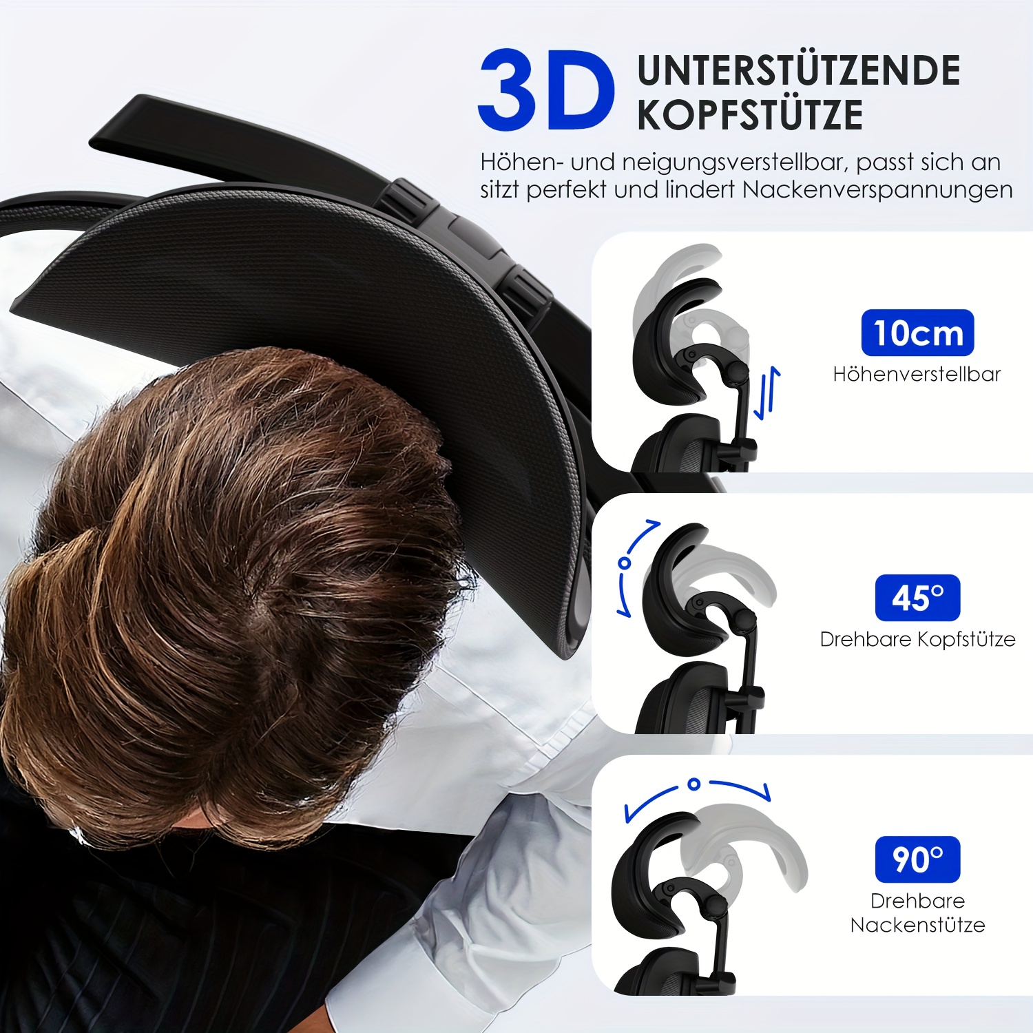 Feature: Head Support, Ergonomic, Adjustable lumbar support, Adjustable Height, Handrail