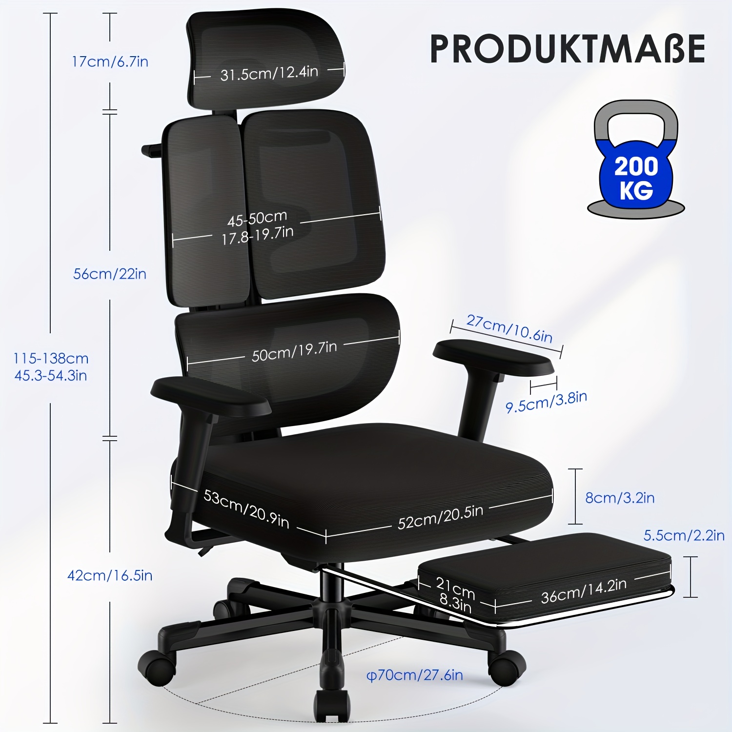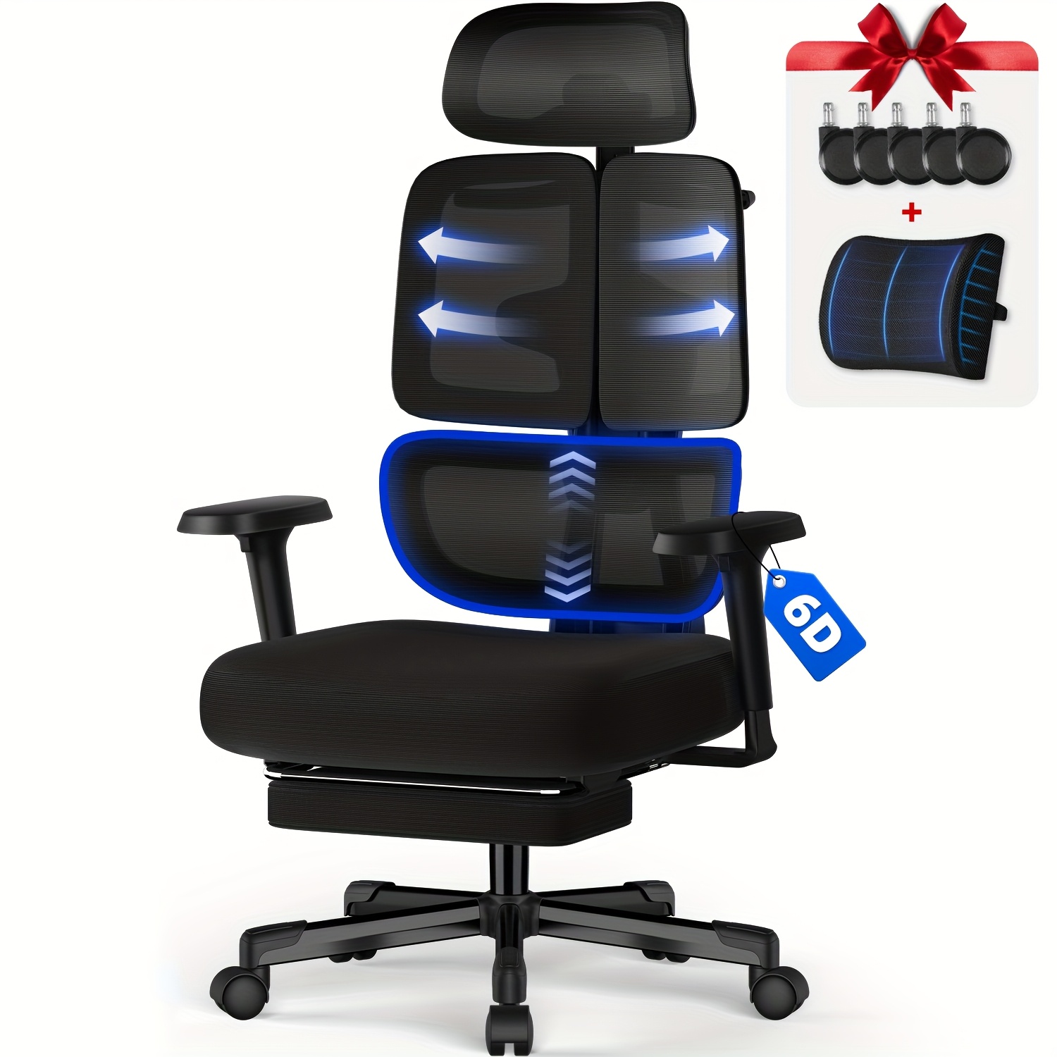 Office Chair with Footrest, 6D Armrests, 3D Headrest, 5D Backrest
